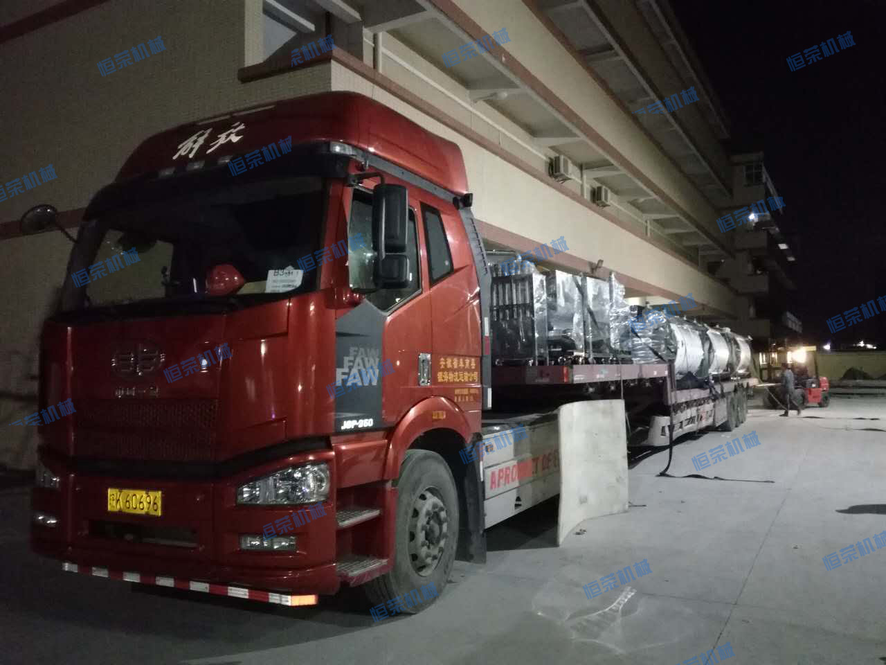 夜深人静的时候,也许你已经进入梦乡,而我们恒荣的大后方,却仍然在打包、装车,井然有序,有条不紊的忙碌着!!!3月16日广东佛山某PE薄膜生产商在我司订了一批中央供料系统,经过全体员工的共同努力,在4月9号如期完成各项检测,整装待发!