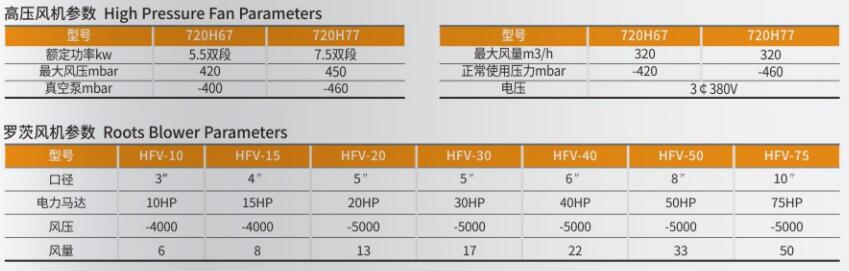 3、相对于离心风机和中压风机来说,其压力高很多,往往是离心风机的十几倍以上;