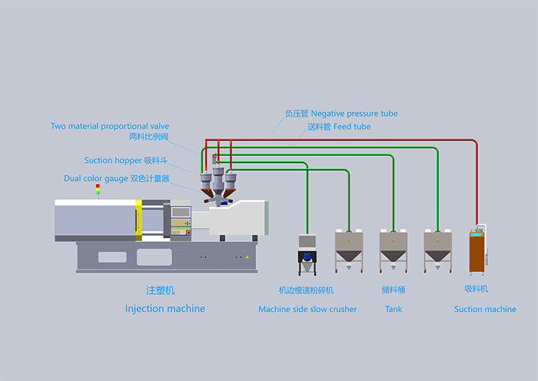 一、高效:集中输送系统可实现将多种原料自动供给多室任意的注塑加工设备使用,在这其中可包括原料的干燥处理、配色处理、以及按比例的粉碎回收料利用,能够实行高度的自动化控制、监测等、并能满足24小时不停机的生产需要。