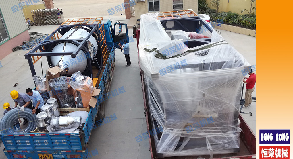 ▲图为两套不锈钢干燥机装车中